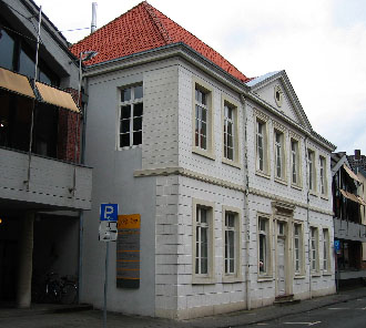 Sie finden unser kleines, vereinsgetragenes Museum im Herzen der Coesfelder Altstadt (Nähe Marktplatz / Lambertikirche / Walkenbrückentor). Unsere barrierefreien Räume liegen hinter der denkmalgeschützten, klassizistischen Fassade eines alten Fabrikanten-Stadthauses. Die ehemals dazugehörige Brauerei befand sich gleich dahinter. Heute steht dort die Stadtbücherei Coesfeld durch deren Eingangs-Foyer Sie zu uns gelangen.
